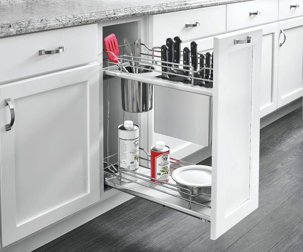 Rev-A-Shelf - 8" Gray Base Cabinet Pullout Knife/Untensil Organizer with Blumotion Soft-Close