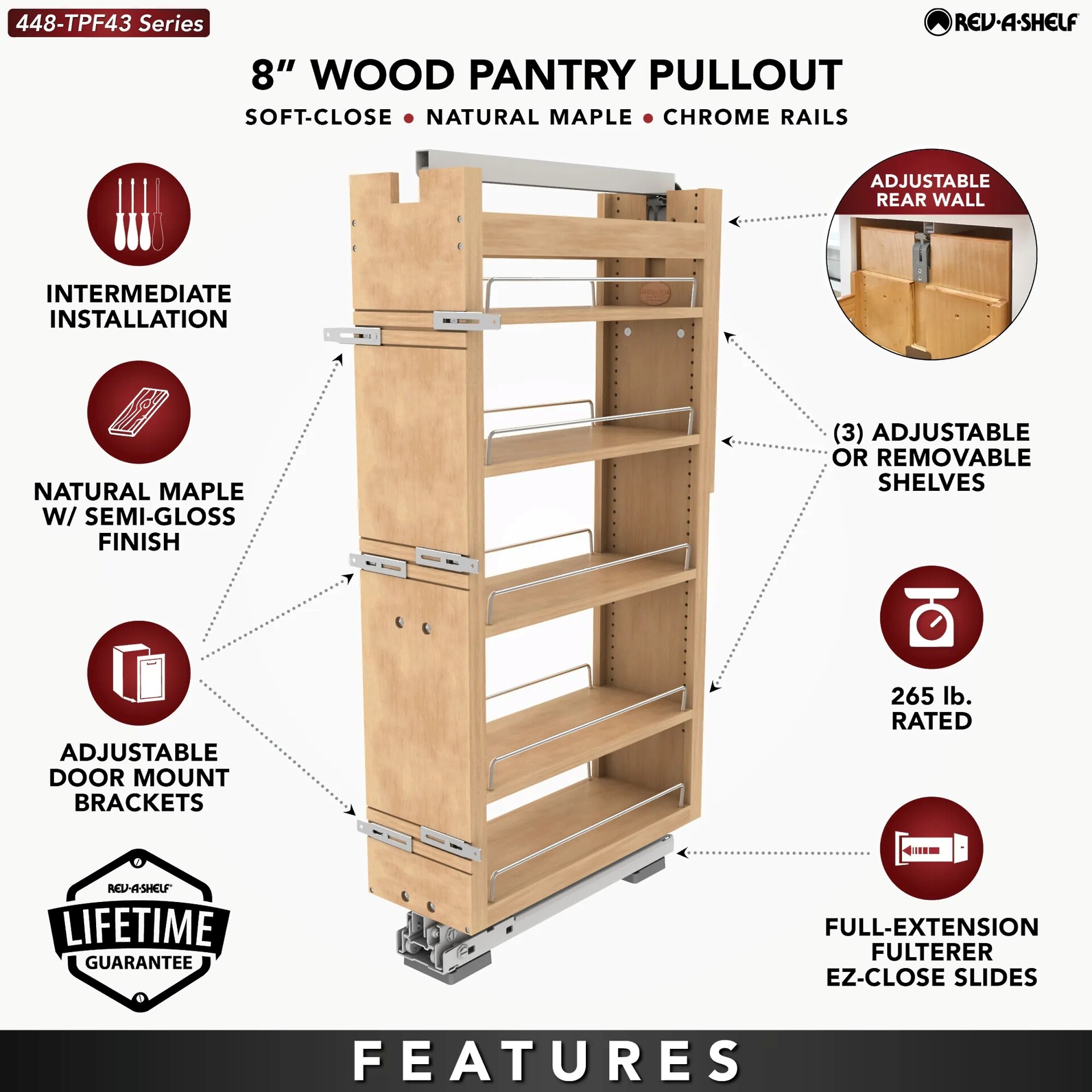 Rev-A-Shelf - 8" x 43" Maple Pullout Wood Tall/Pantry Accessories