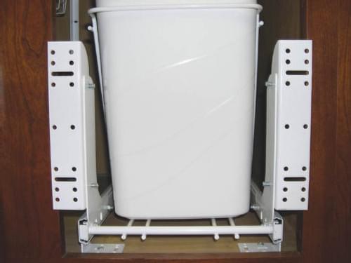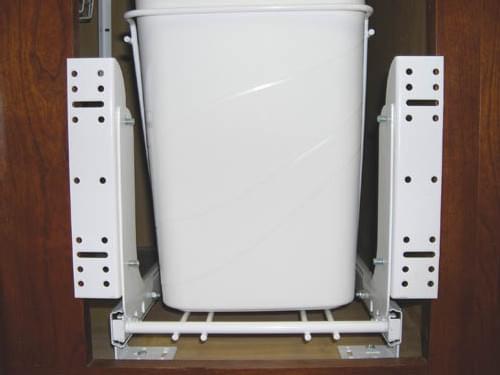 All RV Series Waste Containers and HPRV/HRV Hampers can be attached to the cabinet door for an easy one step process with the Heavy-Duty Door Mount Kit. This system is considered the best in the industry with a six-way adjustable door- mounting bracket for easy installation and simple job site adjustments. The RV DM KIT includes a complete set of brackets, fasteners and spacers for installation on any door style eliminating the need for a sub door panel.