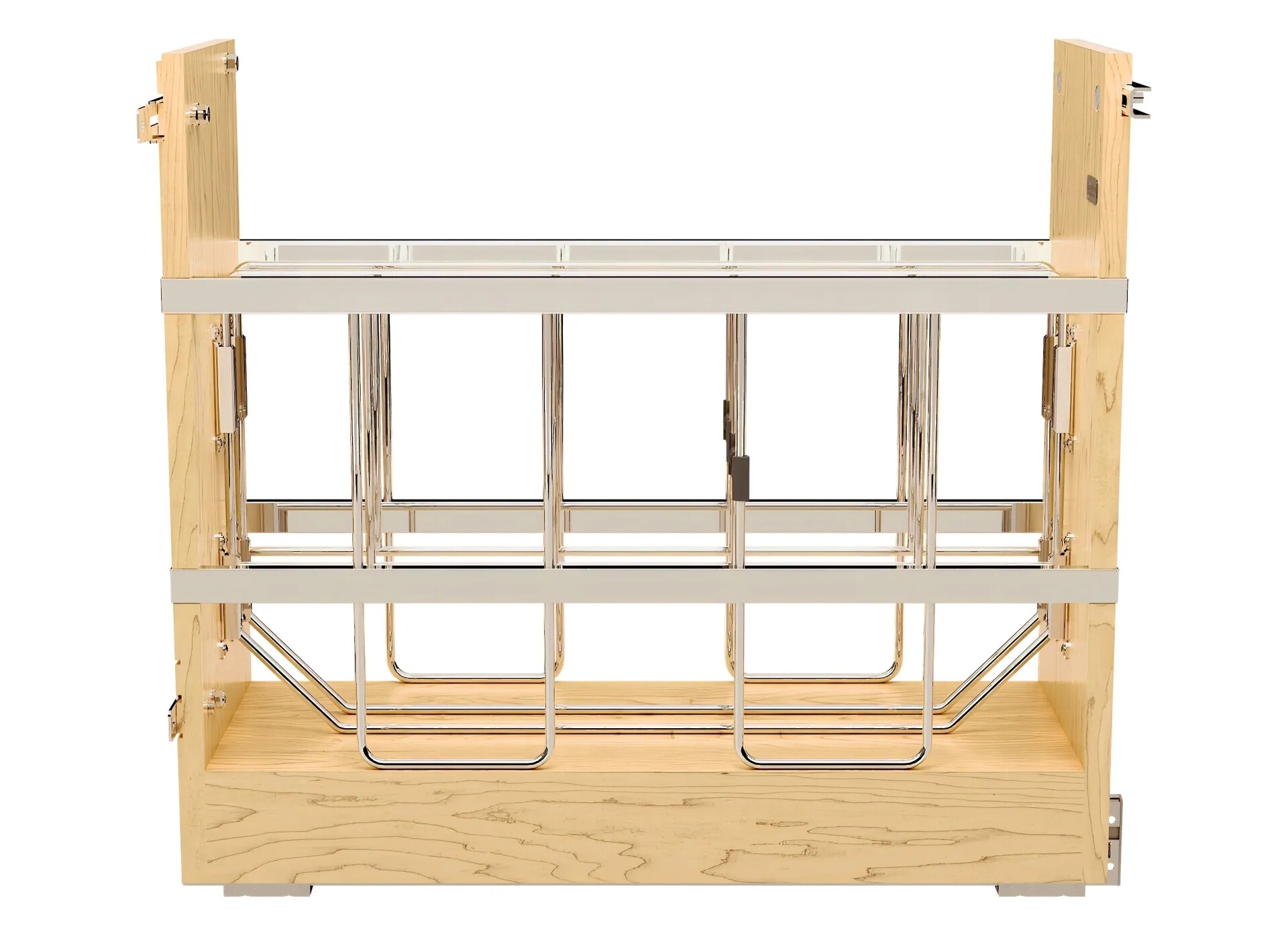 Rev-A-Shelf's baking storage has never been more versatile than with the 447 Pullout Organizer. These organizers feature compartments for storing baking sheets and platters and the removable center racks allow you the ability to store large platters and bake ware if desired.