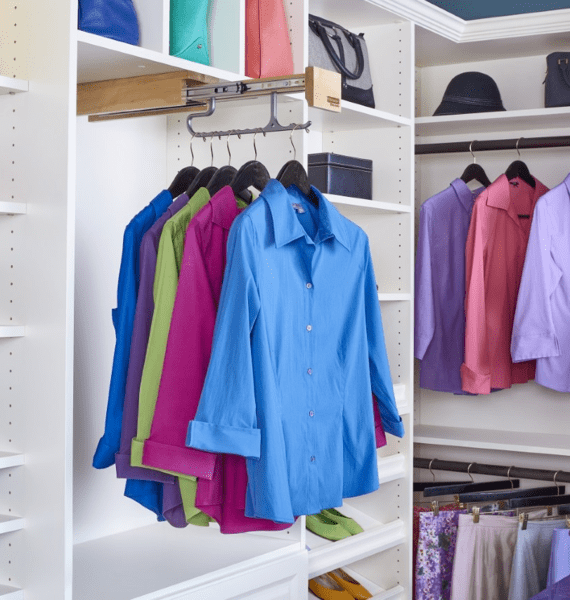 The GLD-CV series valet hanger, a revolutionary organizing pullout that allows you to securely hang your garments inside your closet and bring them out only when you want them, just got better. Designed for 14" closet depths, the patent-pending Glideware Pullout features a push and pull bar for easy accessibility, a chrome rail with scallops to securely hold clothes.