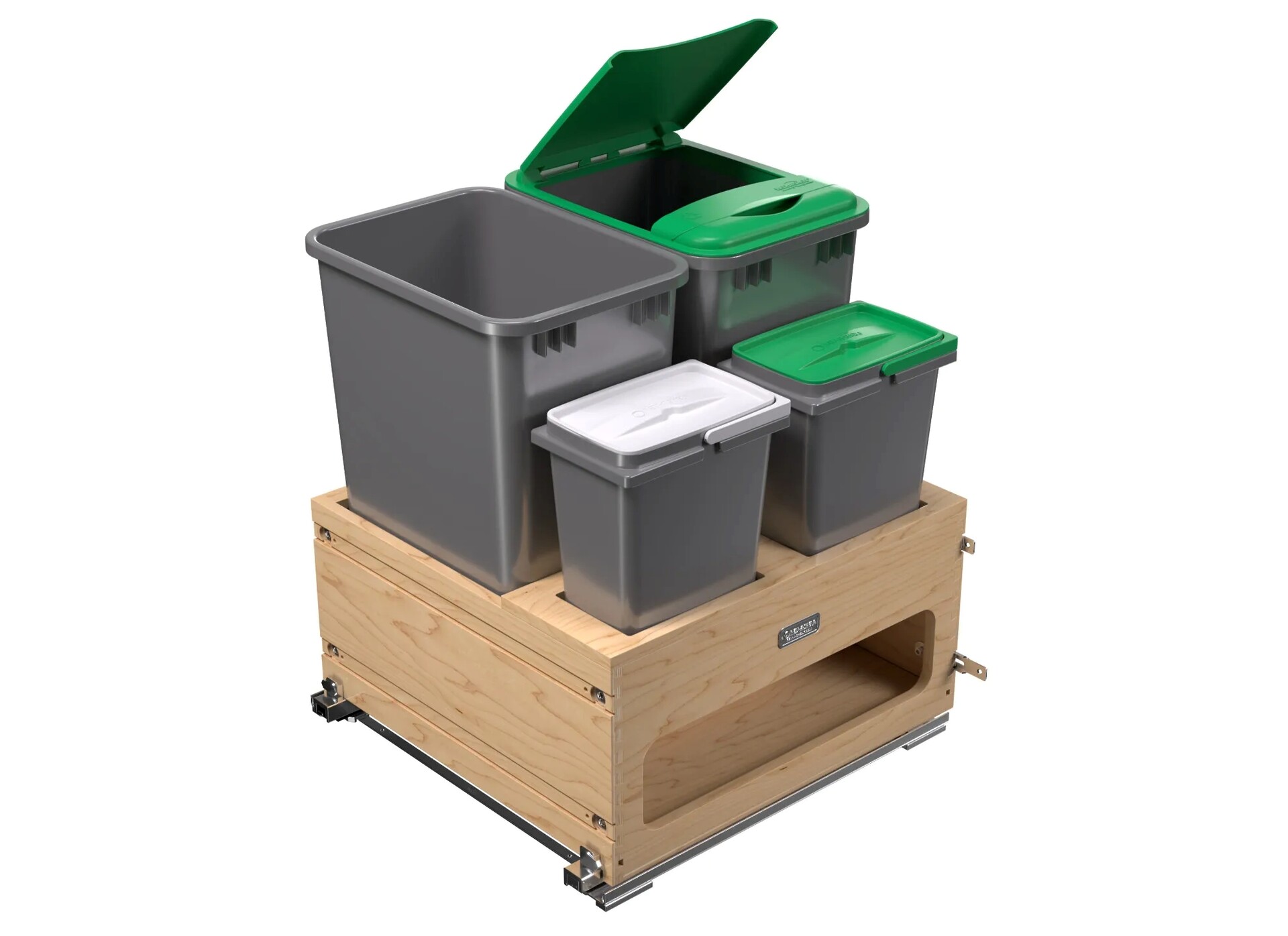 Rev-A-Shelf - Wood Bottom Mount Dbl 50 Qt. & Dbl 8L Organic Waste Center w/ Storage Space, SC