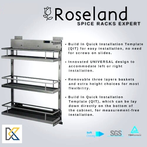 Upgrade your kitchen with our Synchronized Sliding Spice Rack, featuring SG-tested undermount soft-closing slides for effortless, quiet operation. The solid bottom with an anti-slip surface ensures stability. Enjoy endless smoothness, less slippage, and reduced swaying for a clutter-free kitchen!