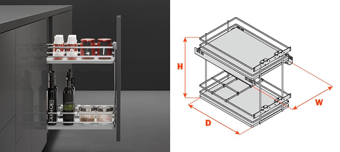 Minimum opening 15˝, two-tier base organizer, full extension soft