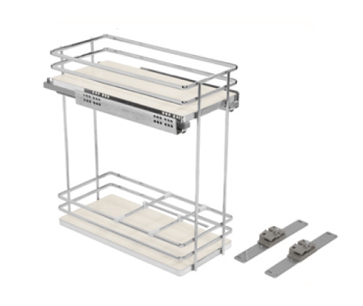 • Two-Tier Chrome/White Base Pullout Organizer