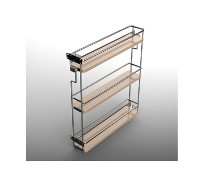 Salice - 4-1/4" Left Hand 3-Tier Maple Base Pullout Organizer w/Soft-Close & Door Mount Kits