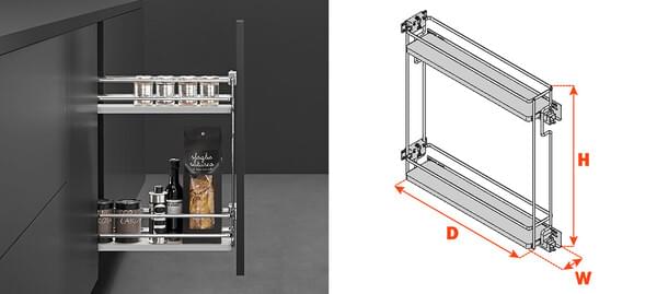 Salice - 4-1/4" Right Hand 2-Tier Maple Base Pullout Organizer w/Soft-Close & Door Mount Kits