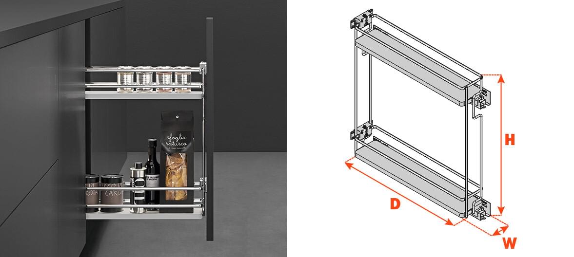 Salice - 5-3/4" Right Hand 2-Tier White Base Pullout Organizer w/Soft-Close & Door Mount Kits