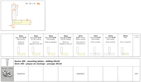 Salice - 6mm Screw-in Mounting Plates For Short Arm Hinges (SKU# C3PBA99)