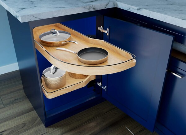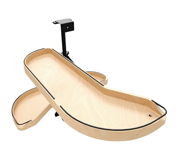 The 487CC Series Craftsman Collection "Girasolo" Blind Corner Optimizer by Rev-A-Shelf® offers a refined and sophisticated update to the classic Girasolo design. Crafted from maple with gracefully curved lines and soft edges, this innovative solution blends both elegance and practicality. The Girasolo glides effortlessly out of the cabinet on a soft-close pivot hardware system, eliminating the need for adjacent appliance clearance and maximizing accessibility. Designed for both right and left blind corner cabinet openings, it is available in multiple sizes and single or two-tier configurations, providing versatile storage options for hard-to-reach spaces.