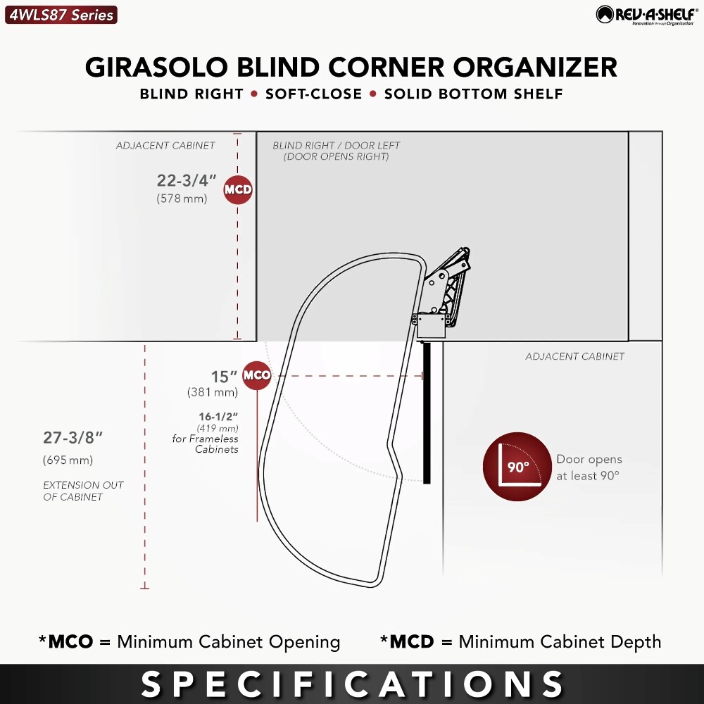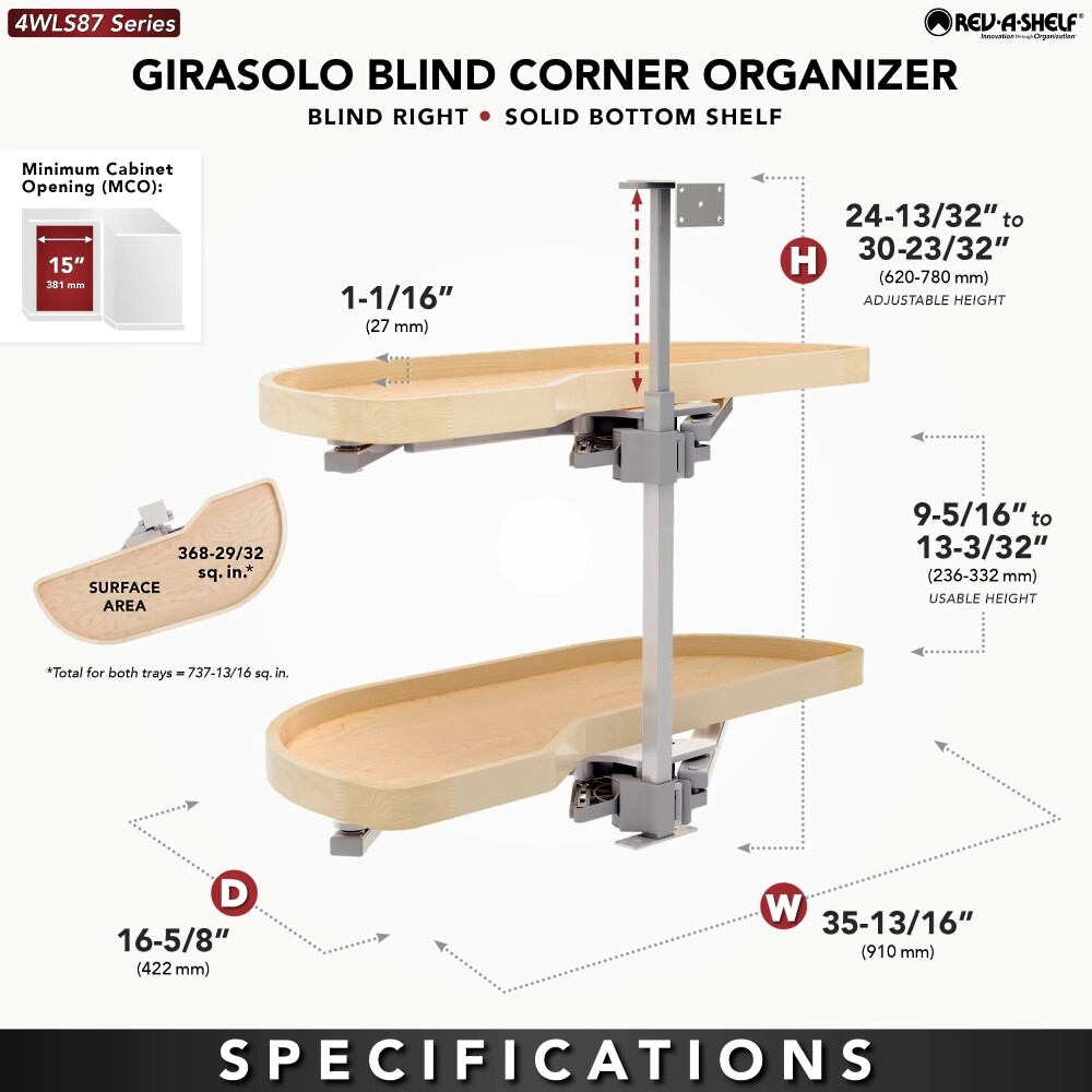 - Designed for 42" & 45" blind corner cabinet with a 15" opening