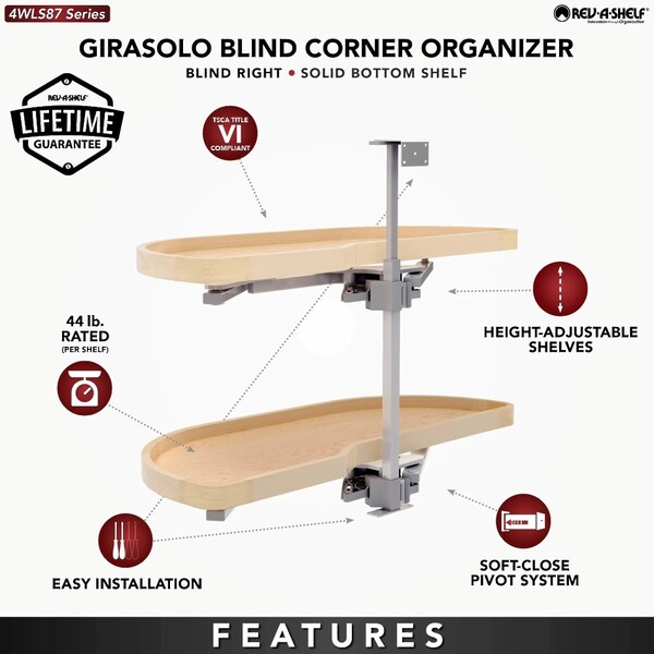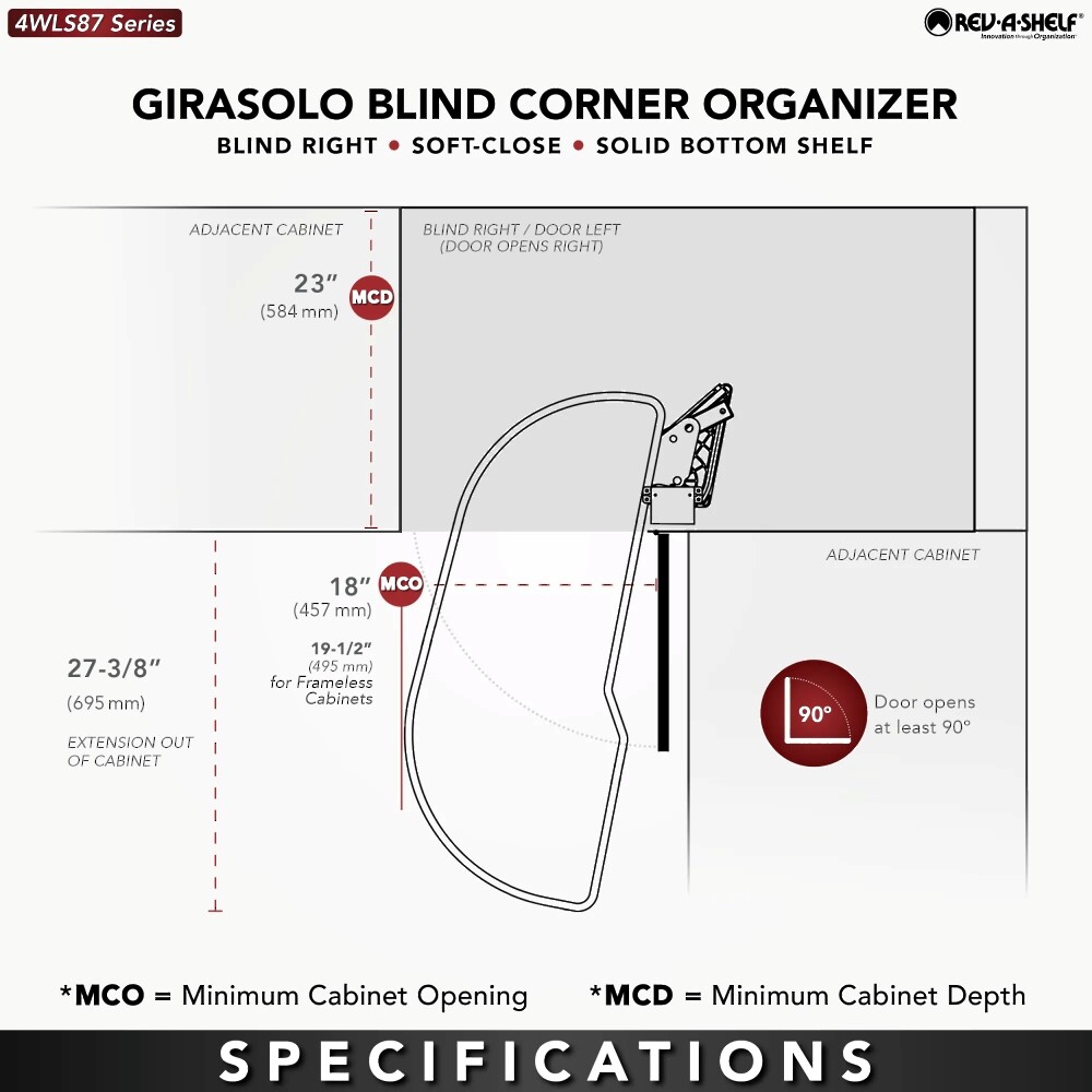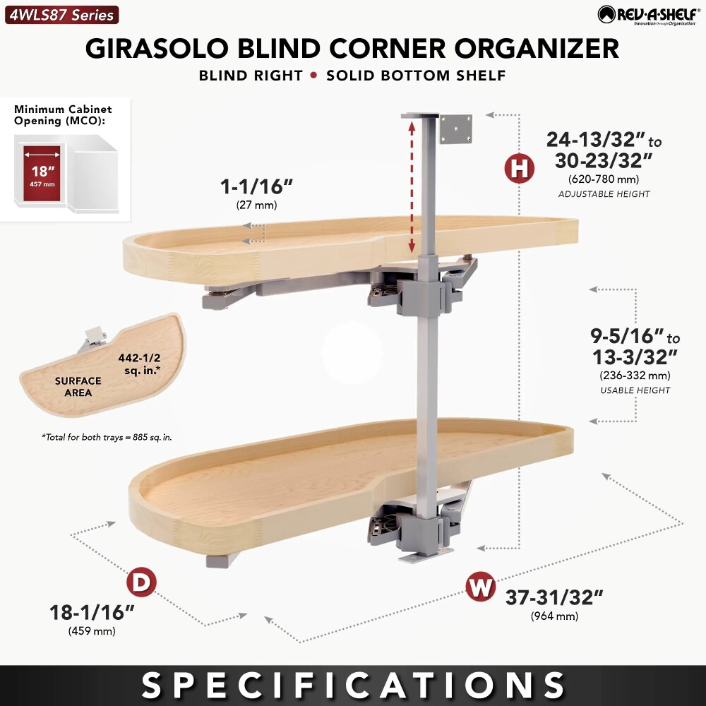 - Designed for 45" & 48" blind corner cabinet with a 18" opening