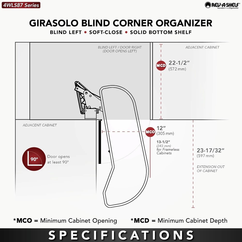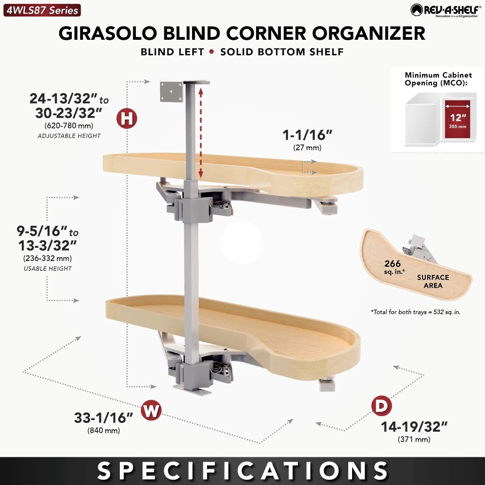 - Designed for 39" & 42" blind corner cabinet with a 12" opening