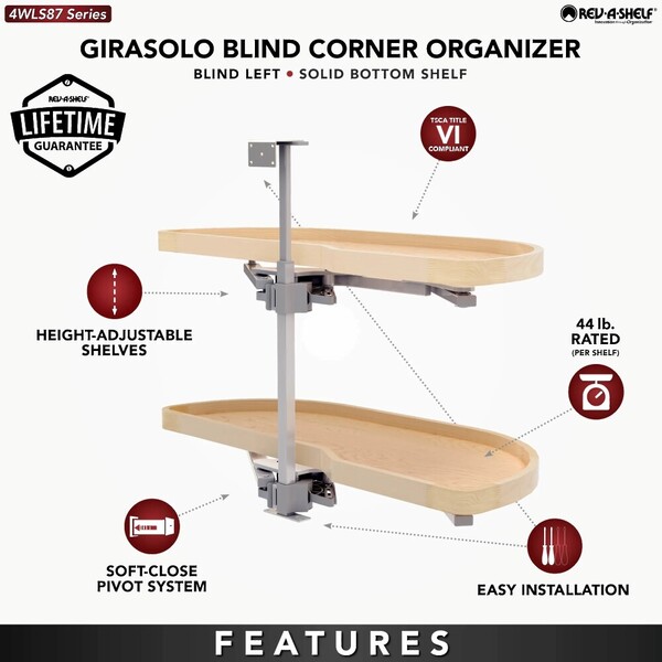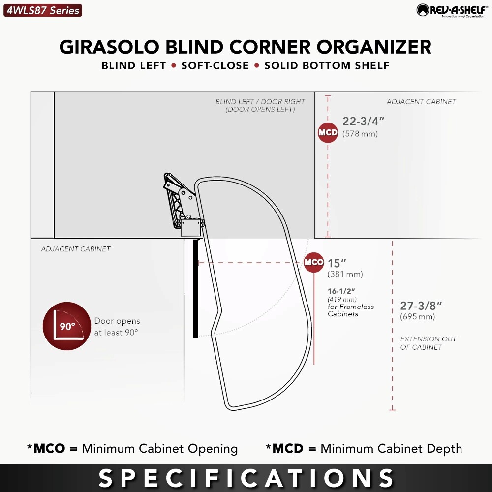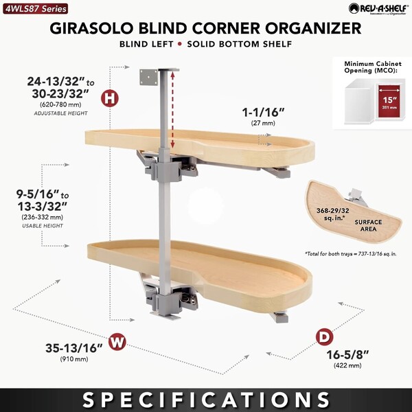 - Designed for 42" & 45" blind corner cabinet with a 15" opening