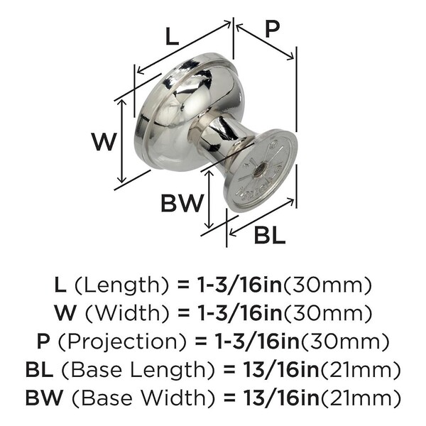 Westerly - Knob 1-3/16" Dia Knob Polished Nickel